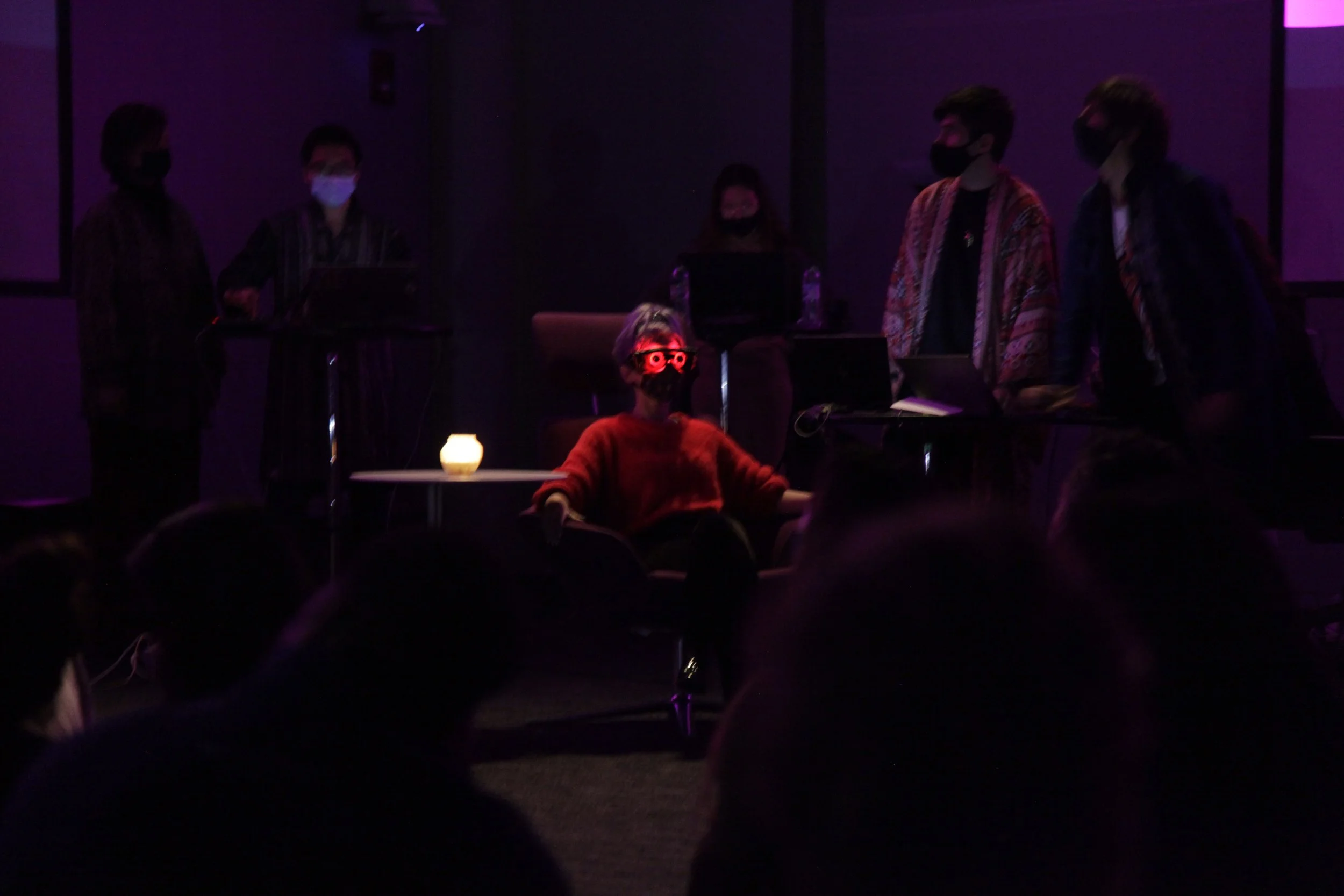 By giving participants a responsive medium grounded in their own physiology, Synchronicity creates a setting for playful self-regulation and shared musical exploration. The system externalizes subtle internal fluctuations into interpretable visual structures, enabling performers to respond musically and transforming the audience into active collaborators within the piece.