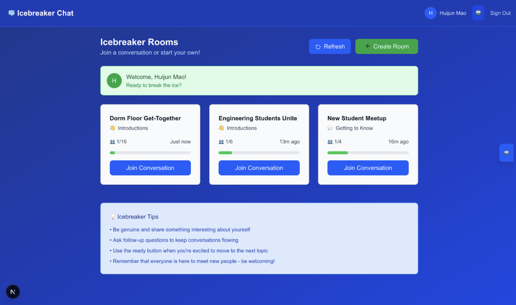 We wanted to make it easier for people to say the first word. For many international students, joining a new group means more than just showing up. It means navigating silence, uncertainty, and the fear of saying the wrong thing. Icebreakers was our way of softening that moment. We designed two quiet companions: one to guide the group gently forward with inclusive prompts, and another to sit beside each person, offering private support with phrasing, translation, and confidence. The agents are not there to speak for you. They are there to make it feel a little safer to speak for yourself.